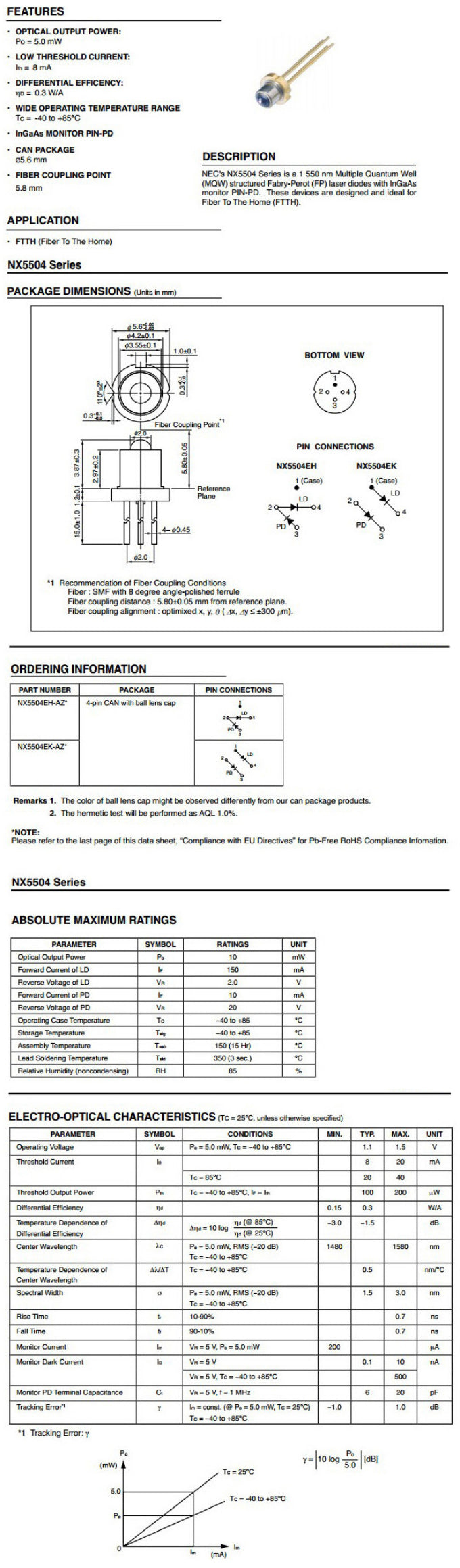 1490nm DFB 1550nm FP 5mW Aspheric Surface Fiber Optic Communication Laser Diodes