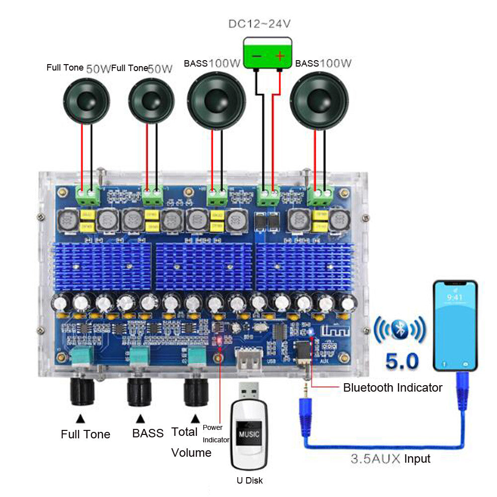 | Title: | 2x50W + 2x100W Bluetooth Digital Power Amplifier Board 4 Channel Dual Bass | ||