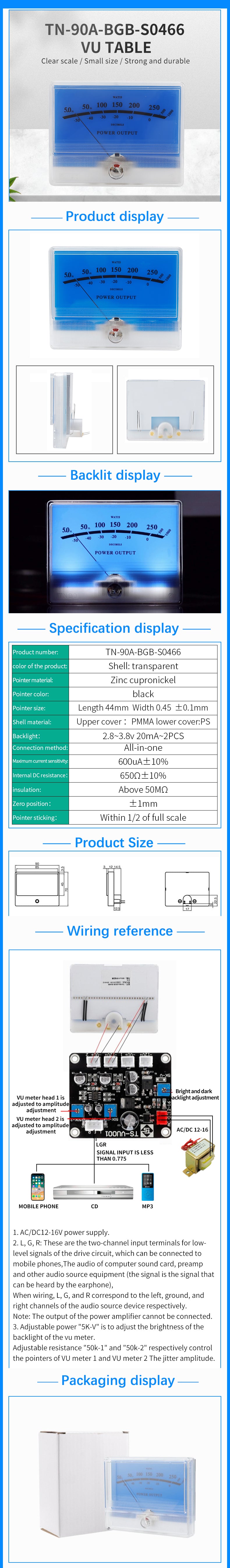 600uA 650Ω Audio Volume Meter With Backlight Pointer Power Meter VU Level Meter