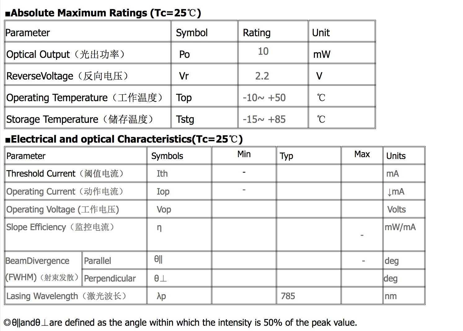 Light Output: 10mW CW