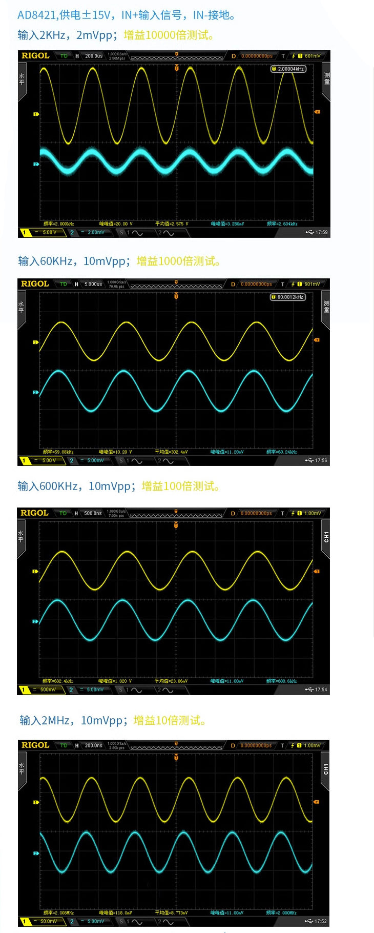 Module gain range: 1-10000 (AD8421 defaults to 11 times) , 1--10000 (AD8429 defaults to 7 times)