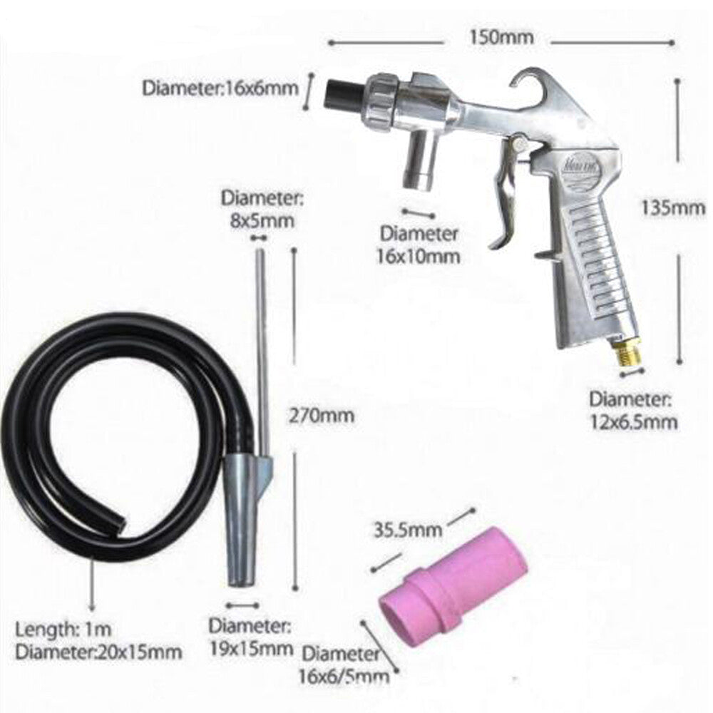 | Use: | Connection air compressor use: for glass blasting, painting, surface polishing, mechanical parts and other surface leave, rust treatment and glass, aluminum alloy surface decoration, marble lettering | ||