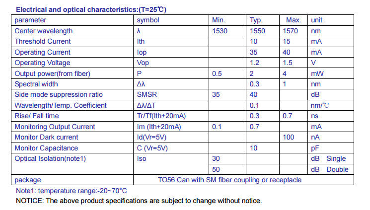 1 x Fiber Output Power 1550nm DFB Laser Diode 4mW