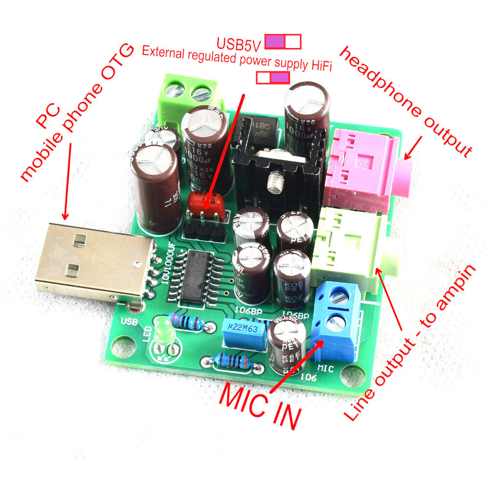 The main reason for the integrated sound card is that there is no way to use an external regulated power supply. Therefore, MINI USB DAC recommends using external power supply mode.